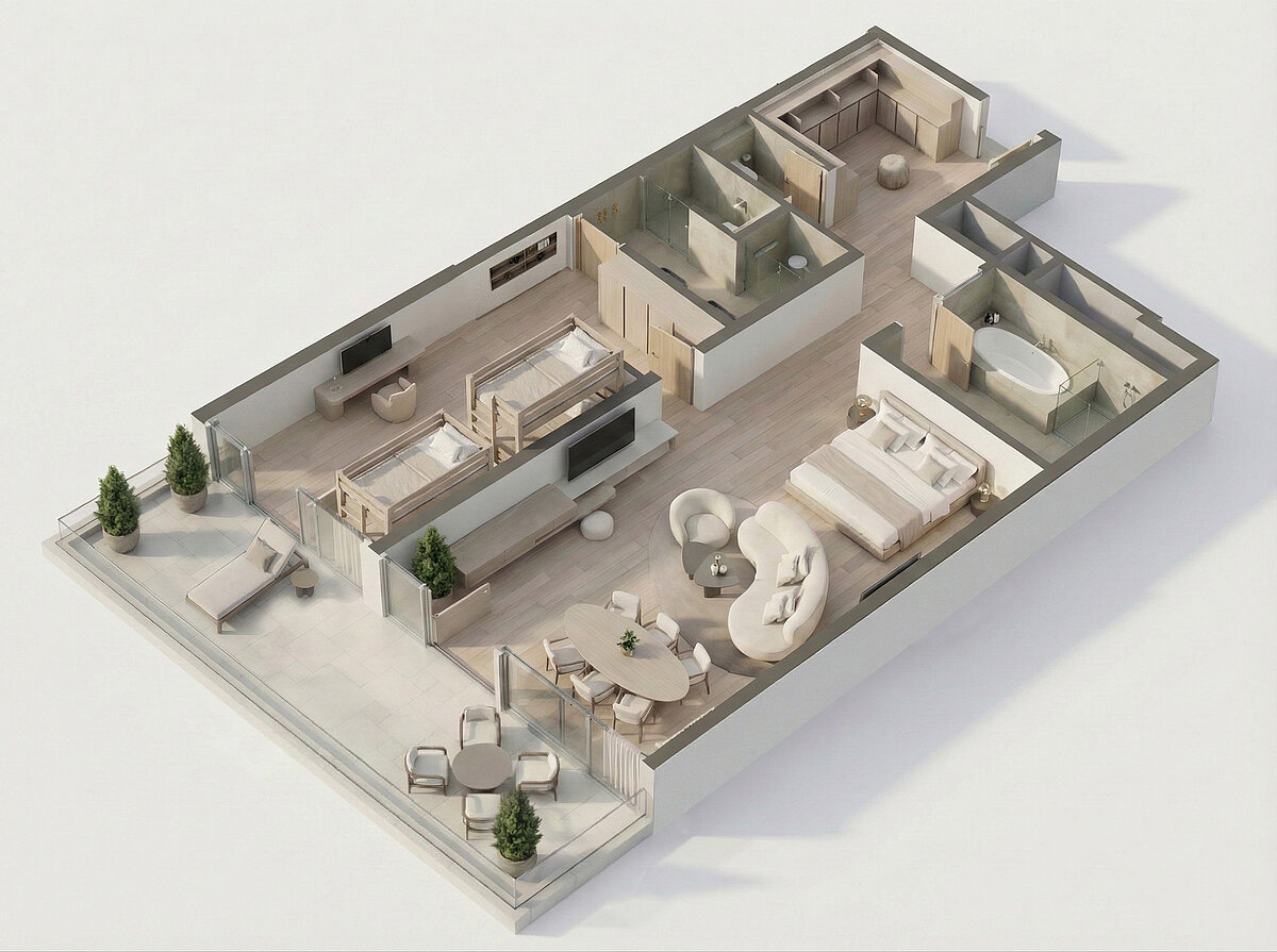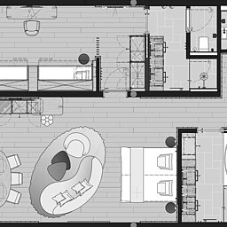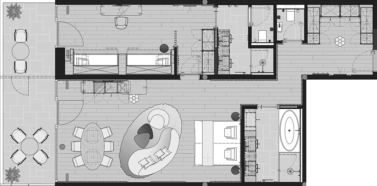 Ein 20 m² großer Balkon rundet die Suite ab und bietet zusätzlichen Raum im Freien.