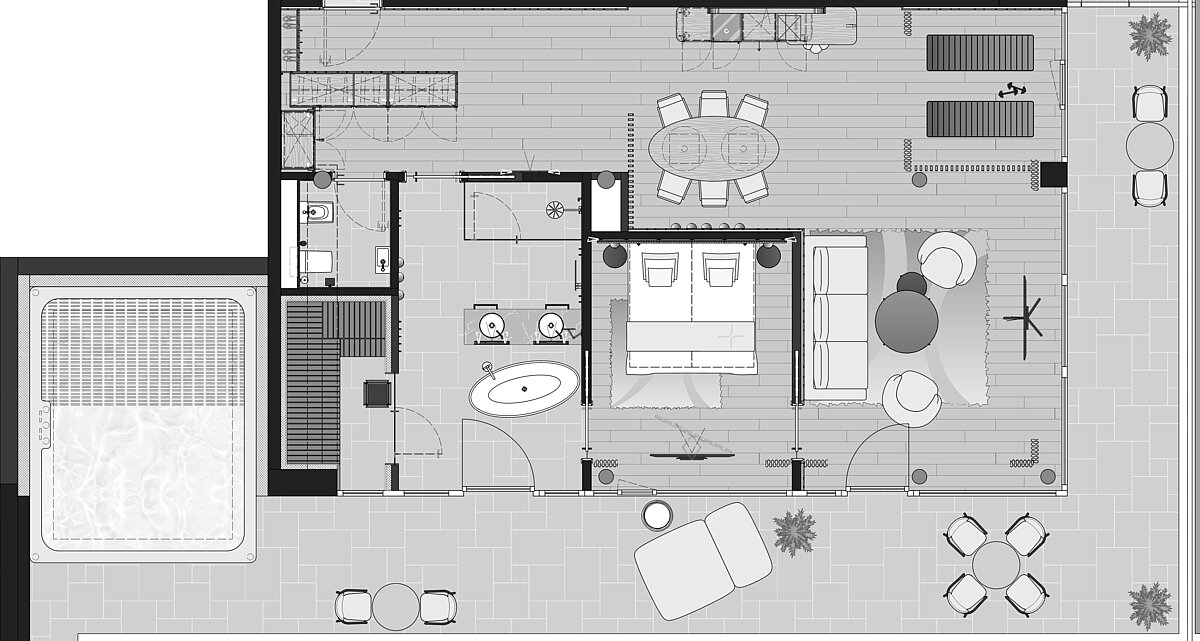 • Luxury Sky Pool Suite im 4. Stock in ruhigster Lage Richtung Süden